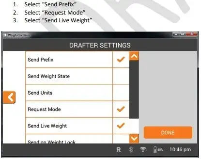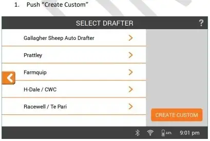 The Galalgher TW Scales are able to connect and communicate with the Te Pari DR3 drafter but the setup needs to be configured via the “Custom” menu. Ensure the DR3 drafter is running software version AD219